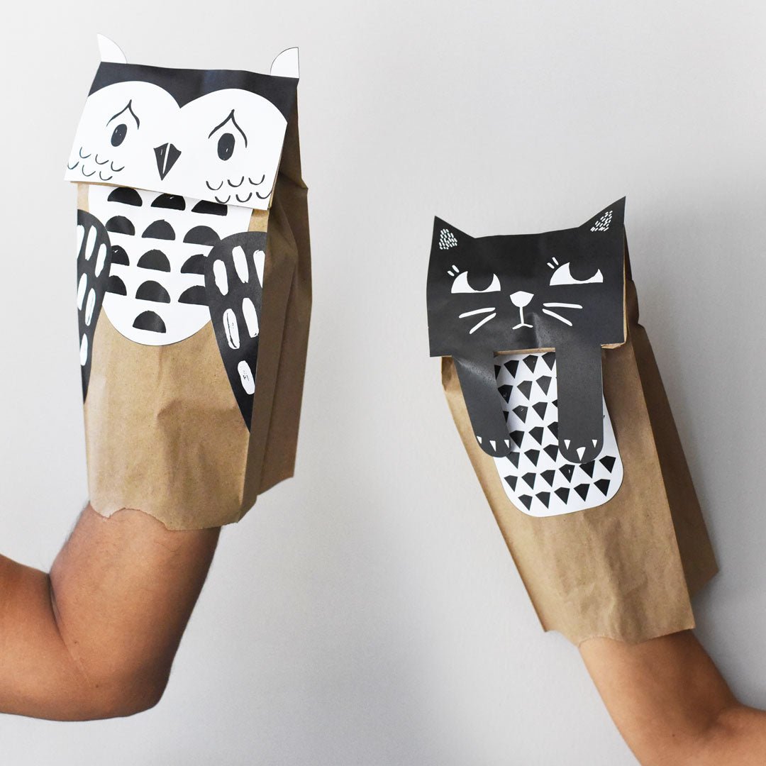 For a little craft fun, download these printable sack puppet Owl & Cat friends. Simply cut them out and glue to paper lunch sacks. For added creativity, have your child customize the characters by coloring the papers or bags before you cut them out. It's a hoot!