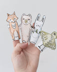 More entertainment for kids has arrived with this free printable finger puppets craft. We have included a Woodland story in the printables that you can read along with your finger puppet characters, or make up your own! Simply print, color (if desired), cut out, and tape the finger loop and you're ready for creative play with Fox, Bear, Rabbit, and Bird pals.