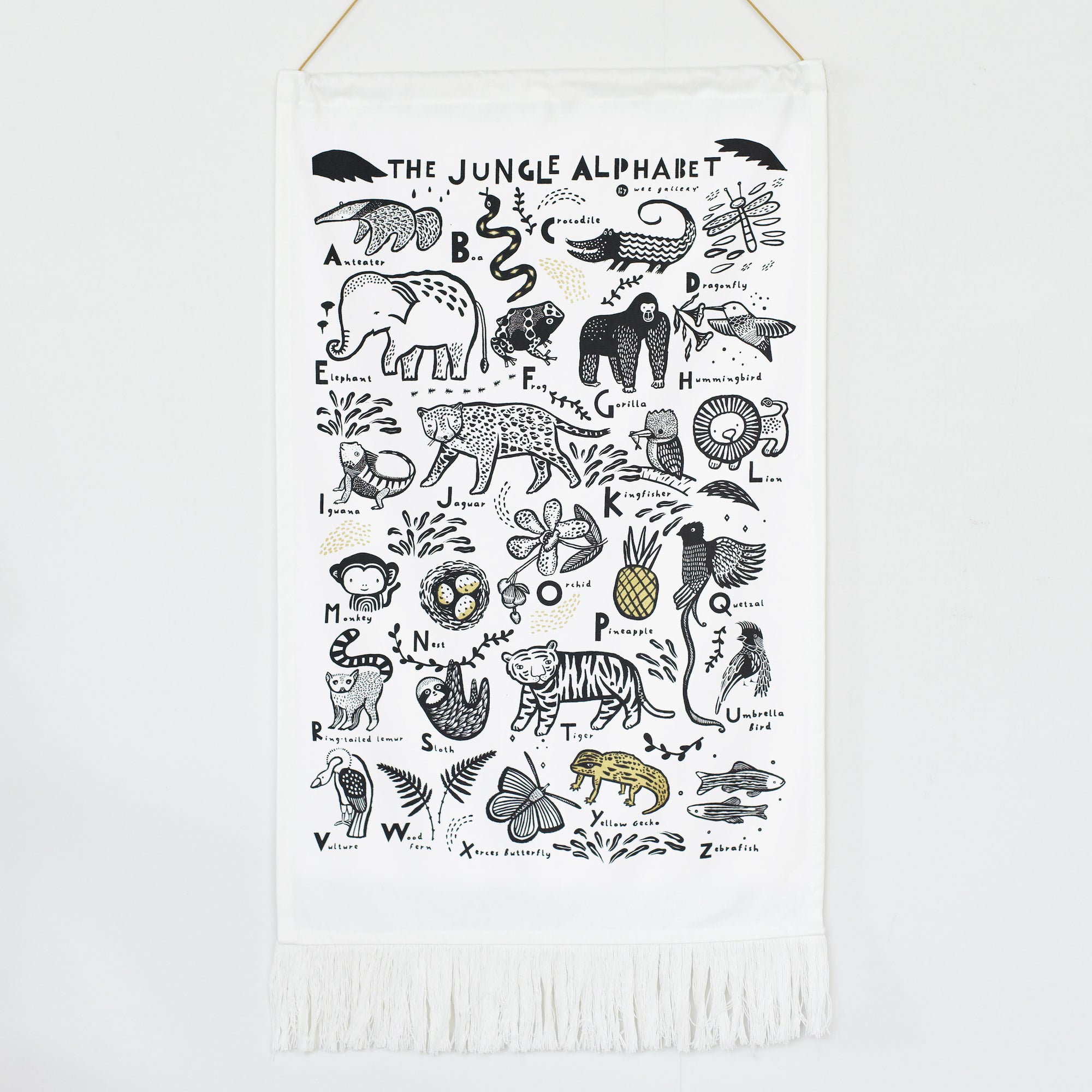 Bedruckter Wandteppich mit Dschungel-Alphabet