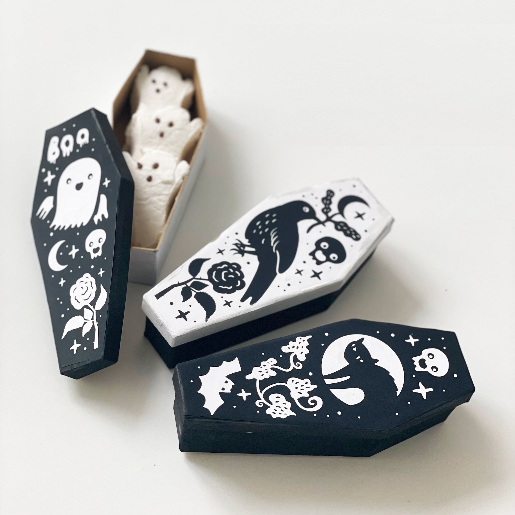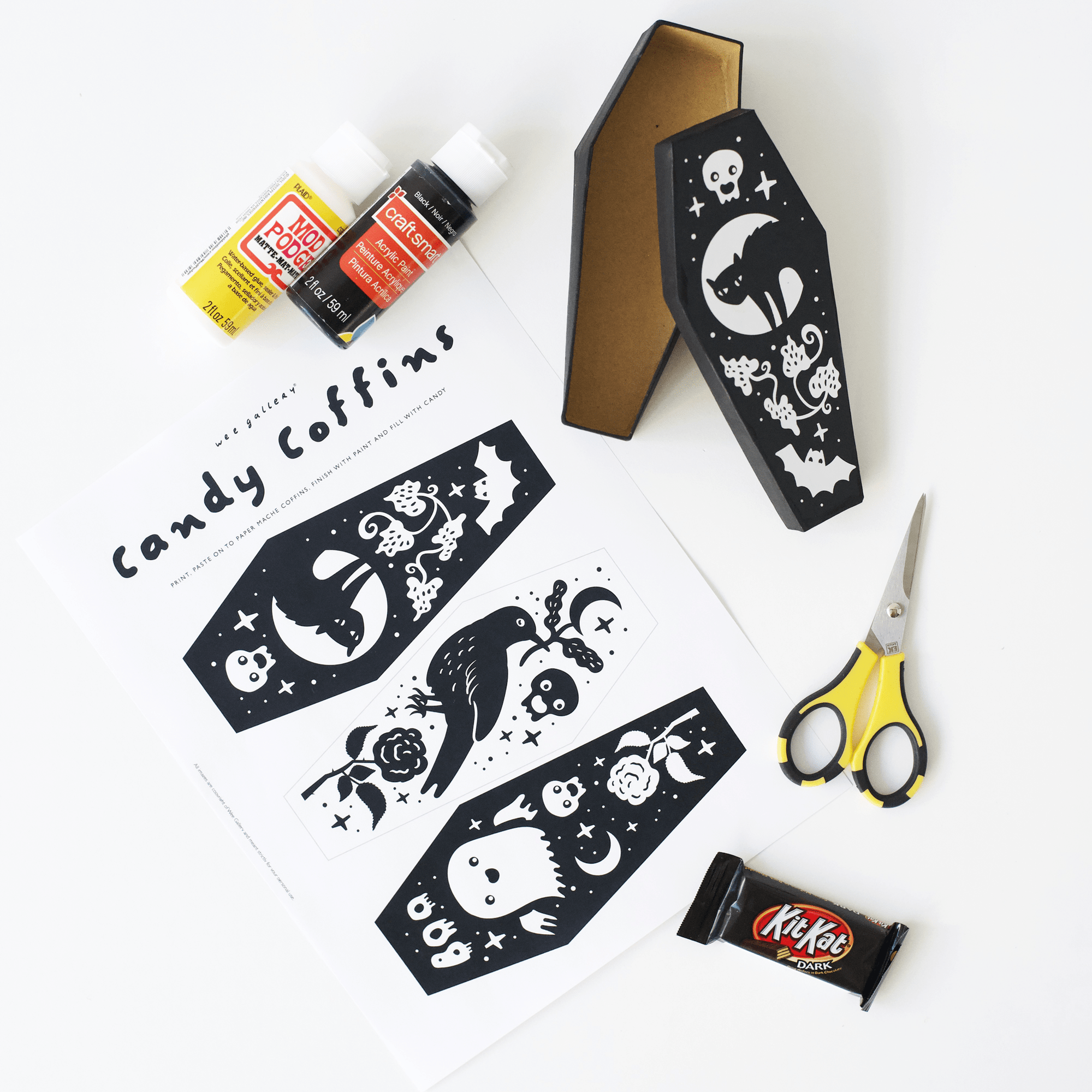Wir lieben Spooky Season! Wenn Sie auf der Suche nach einem entzückenden und leicht gruseligen Bastelprojekt für dieses Halloween sind, laden Sie unser kostenloses druckbares Bastelprojekt „Süßigkeitssärge“ herunter. Kinder können mithelfen, indem sie beim Kleben helfen oder die Motive vor dem Aufkleben ausmalen. Dieses Handwerk erfordert zusätzliche Materialien, Papiersärge wie diese aus Michaels Handwerk .