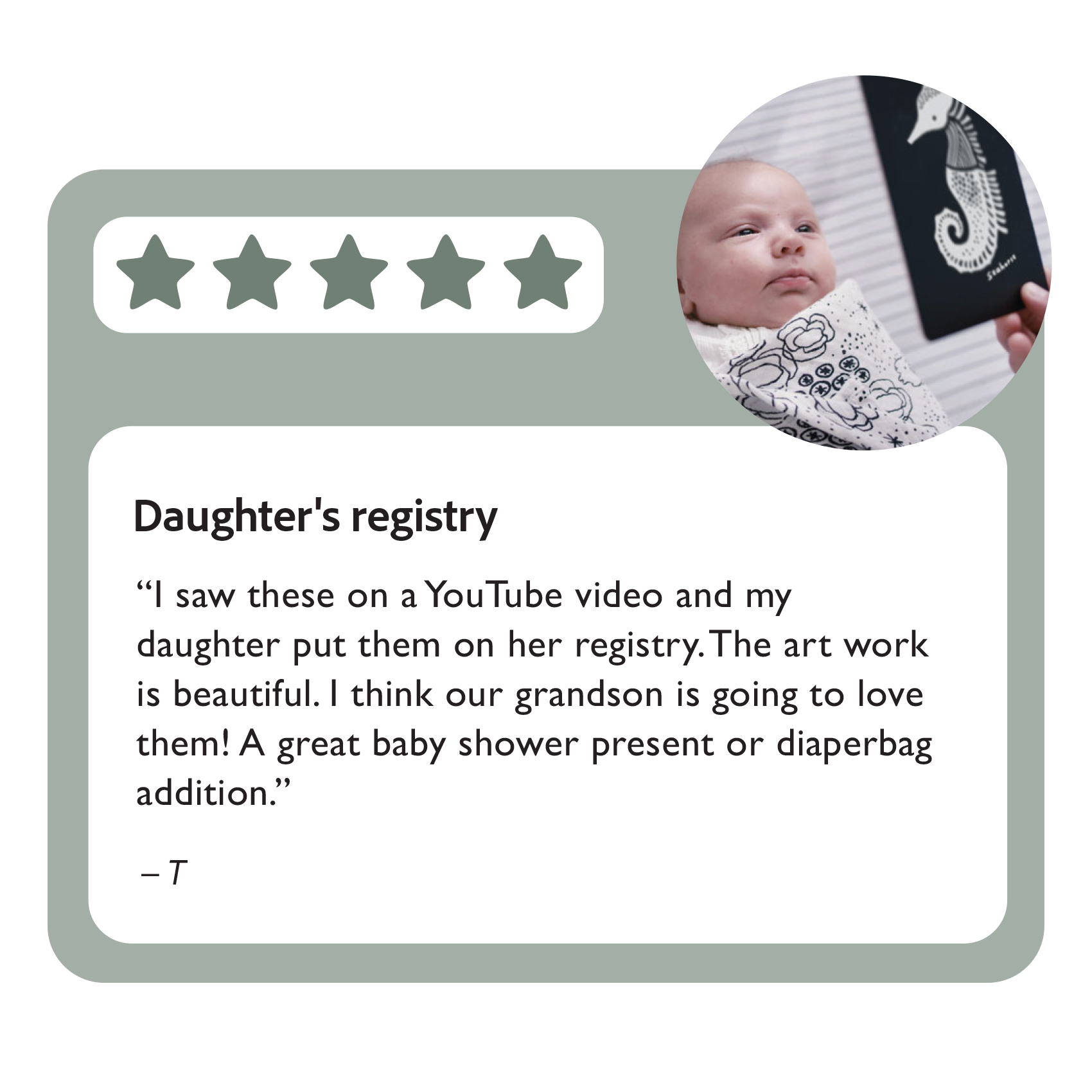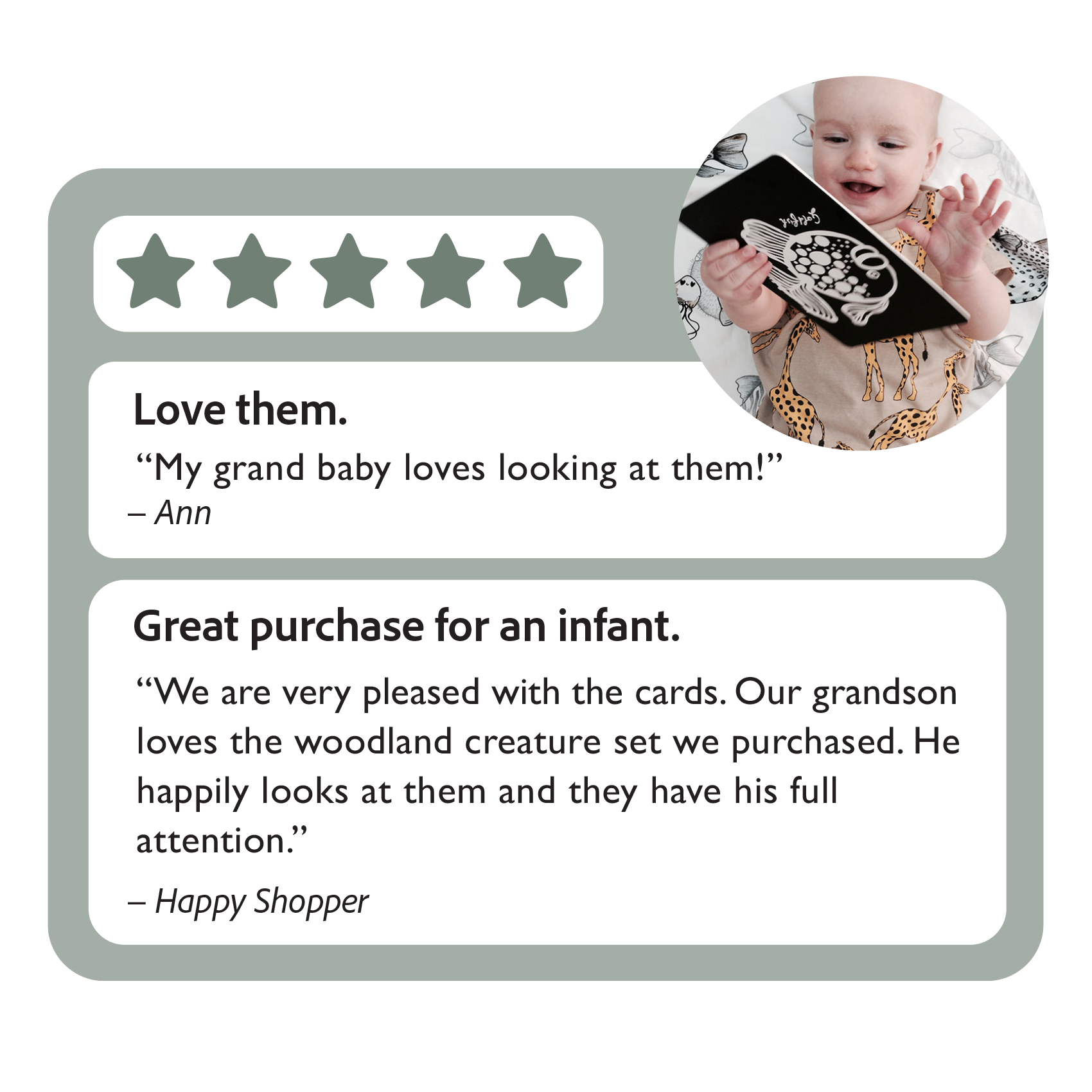 Introduce your baby to a world of wonder with our Art Cards for Baby, featuring high-contrast black-and-white animal designs that captivate newborns and support visual development. Each eco-friendly card is printed with soy-based ink, durable, and easy to clean—perfect for tummy time or soothing a fussy baby.