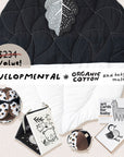 Completing this set is our reversible Tummy Time Gallery paired with hand-illustrated woodland animal themed Art Cards that provide endless opportunities for stimulating your baby's senses from infancy and beyond. Featuring high contrast black and white graphics, embroidered details on the gallery, and interactive pockets for a dynamic rotation of imagery, these items are perfect for engaging and entertaining your little explorer at every stage of development. The Tummy Time Gallery can be tied up into a triangle, or propped up accordion style, as well as laying flat - designed to meet baby's needs during multiple stages of development and growth.