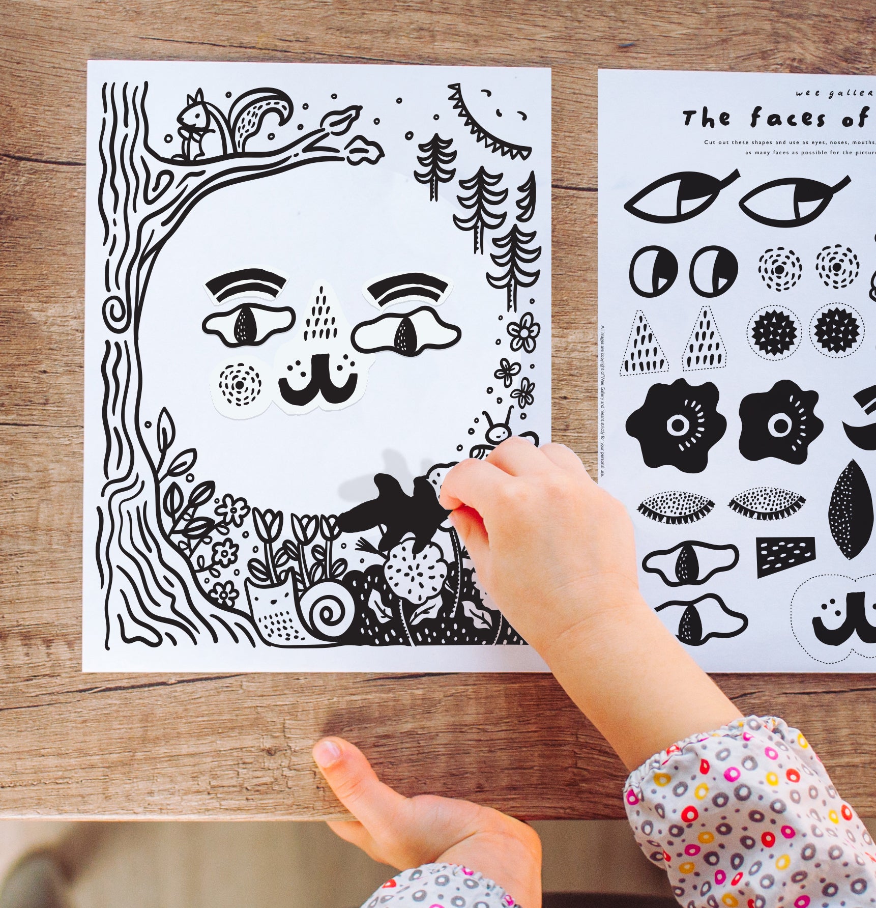 Feiern Sie die unterhaltsame Seite der Natur mit dieser kreativen, familienfreundlichen Aktivität! Laden Sie einfach die zweiseitige Druckversion herunter, malen Sie sie bei Bedarf aus und schneiden Sie die verschiedenen Formen aus, die Sie verwenden möchten, um Ihre eigenen süßen oder albernen Gesichter zu erstellen. Probieren Sie verschiedene Kombinationen aus, sehen Sie, wie viele Gesichter Sie erstellen können, und fügen Sie Ihr endgültiges Design zur Anzeige ein. Sie können auch Ihre eigenen Designelemente aus Zeitschriftenausschnitten collagieren oder natürliche Materialien wie abgefallene Blätter oder Blumen ausprobieren.