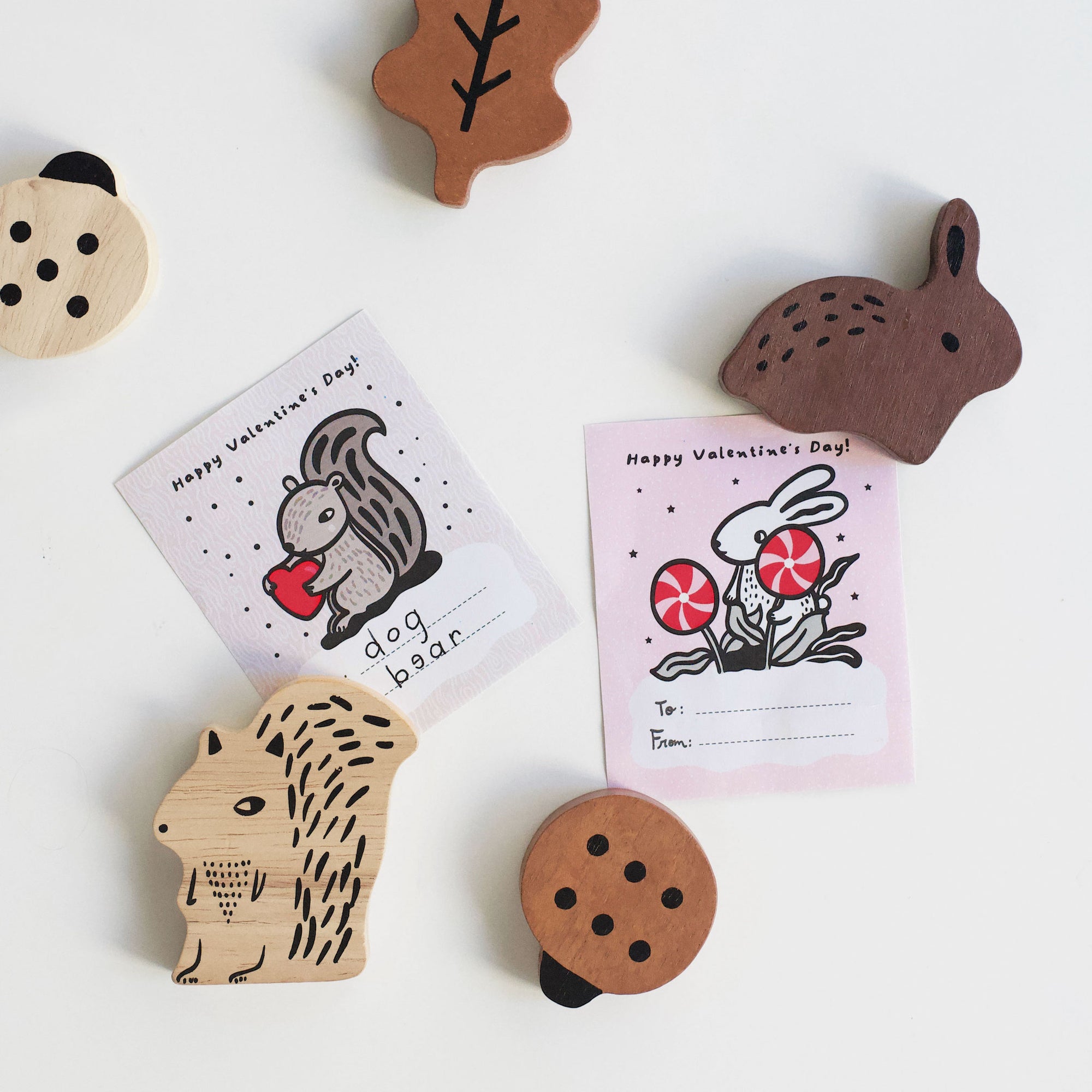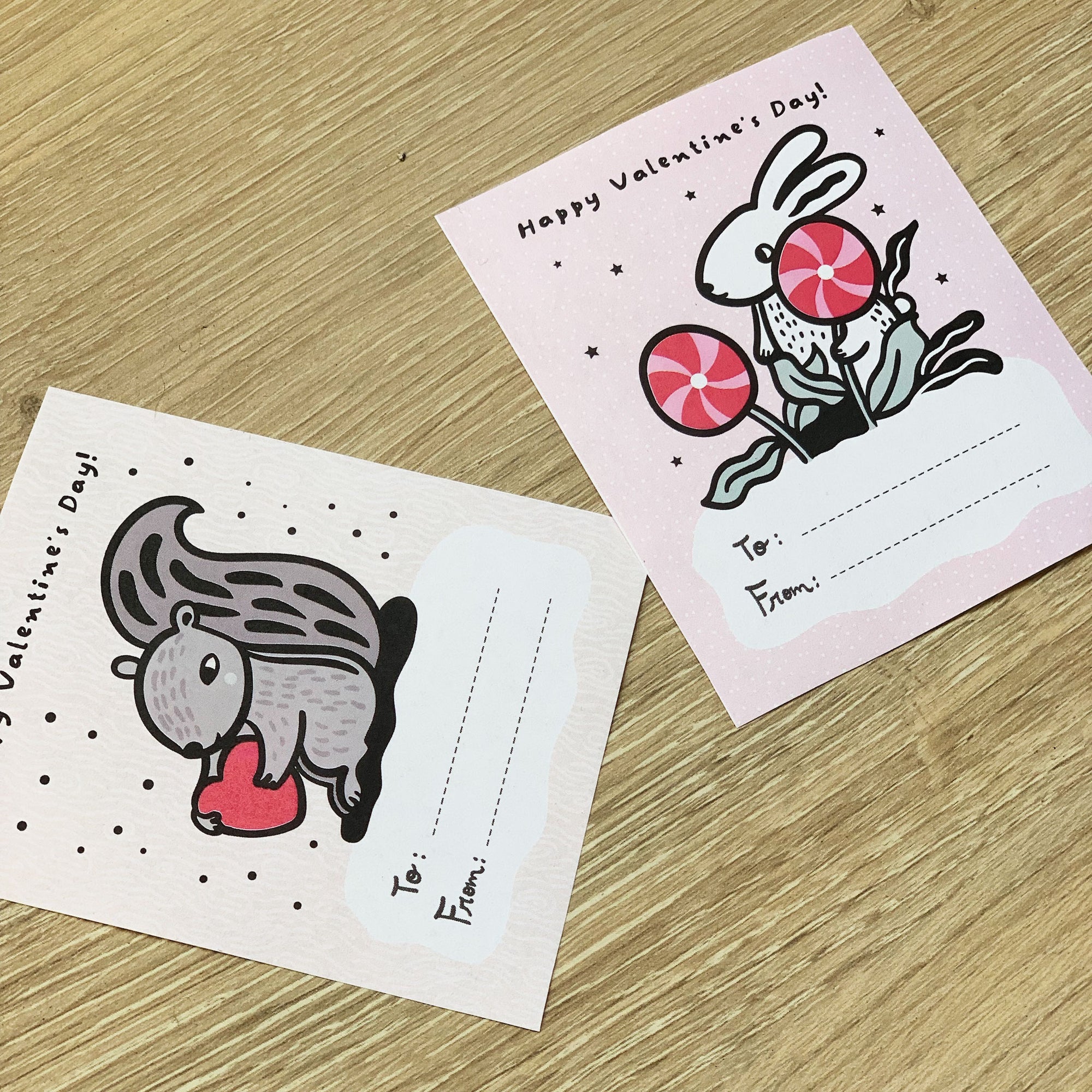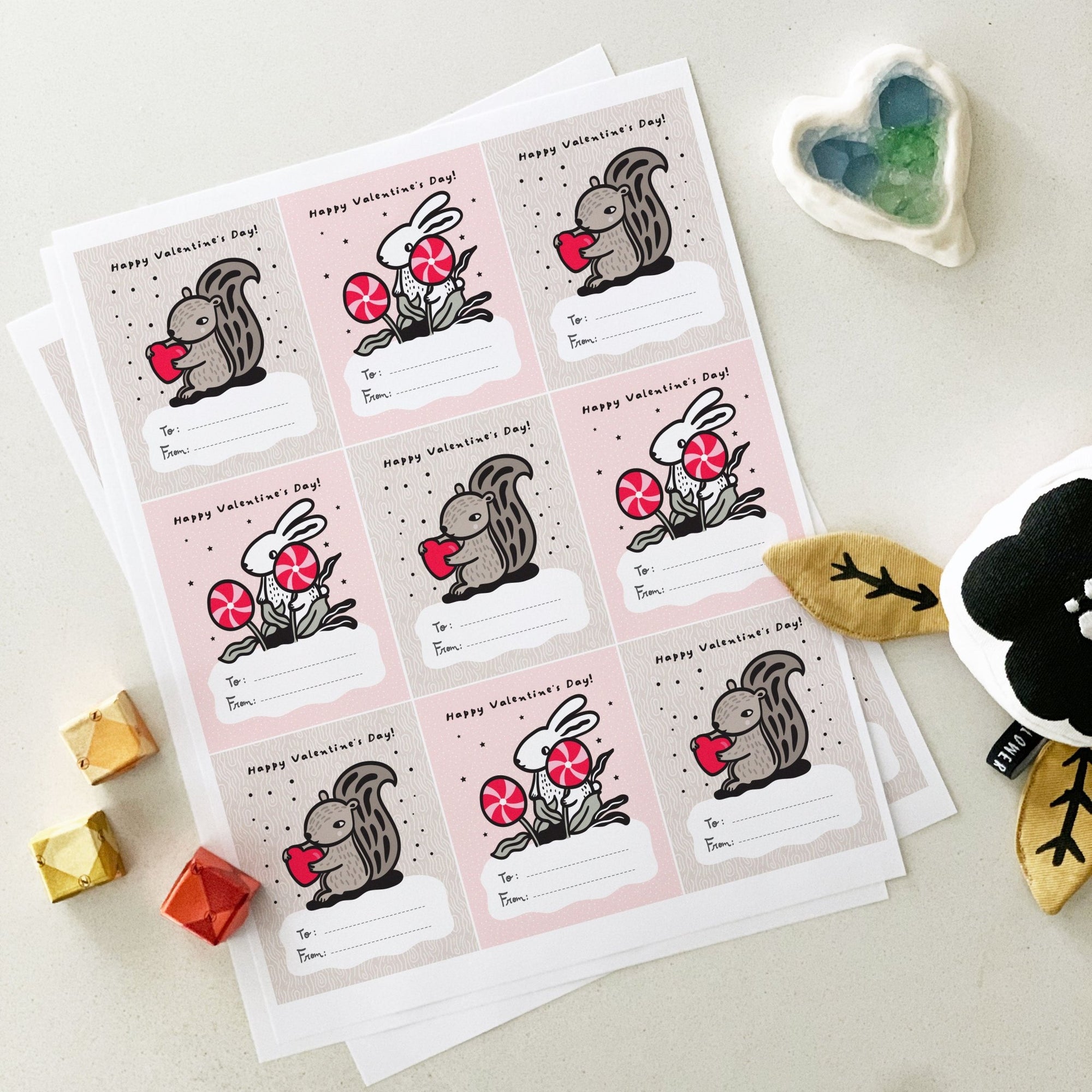 Ein entzückender Hase und ein Eichhörnchen sind hier, um Valentinswünsche wahr werden zu lassen! Drucken Sie einfach den Bogen mit neun Karten aus, schneiden Sie sie an den Rändern aus und schon haben Sie ein Kartenset für die Familie oder die Freunde Ihres Kindes in der Schule.