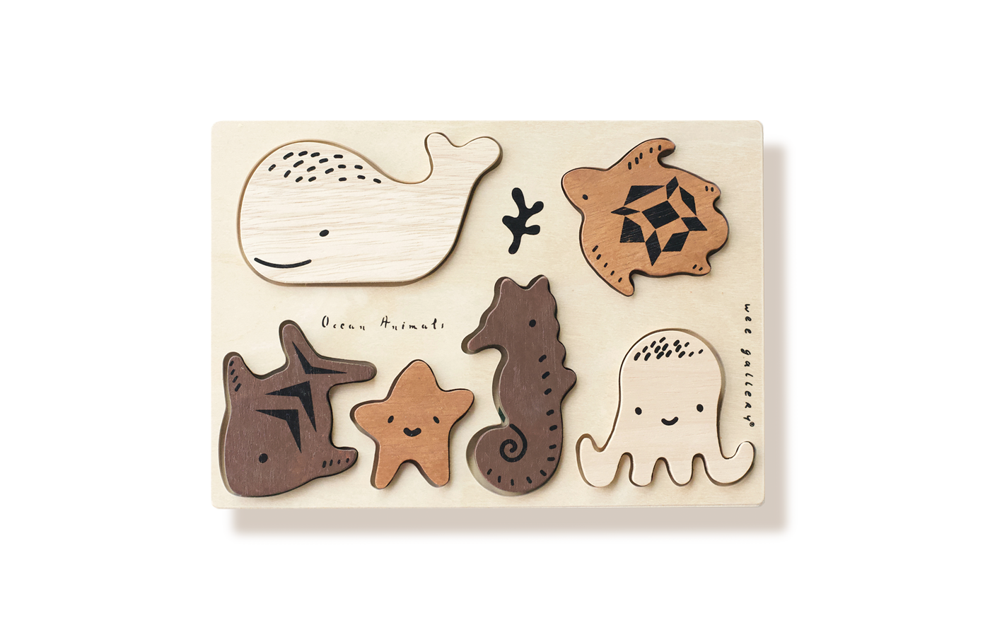 Toddlers build fine motor skills and hand-eye coordination as they fit each animal into place. The six ocean creatures also become characters for storytelling and pretend play—boosting creativity and language development. Made from smooth, eco-friendly wood, it’s safe for little hands and built to last. A beautiful, open-ended toy that grows with your child and inspires joyful learning every step of the way.