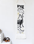 First up is our organic cotton fabric Growth Chart, adorned with delightful dinosaurs that are there for each inch while your little one grows. Crafted from natural organic fabric and featuring lovely illustrations, this chart doubles as a charming wall tapestry, adding a touch of whimsy to any nursery, bedroom, or playroom decor. With easy mounting using the attached hanging twine, it's a breeze to adjust or move whenever needed.