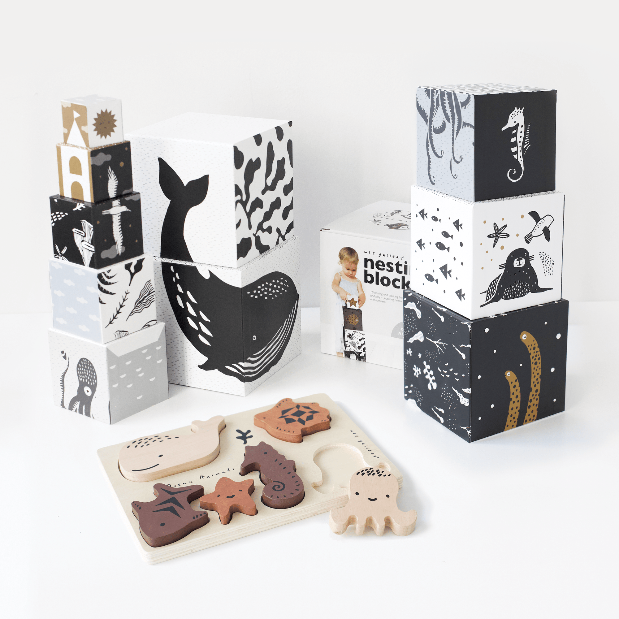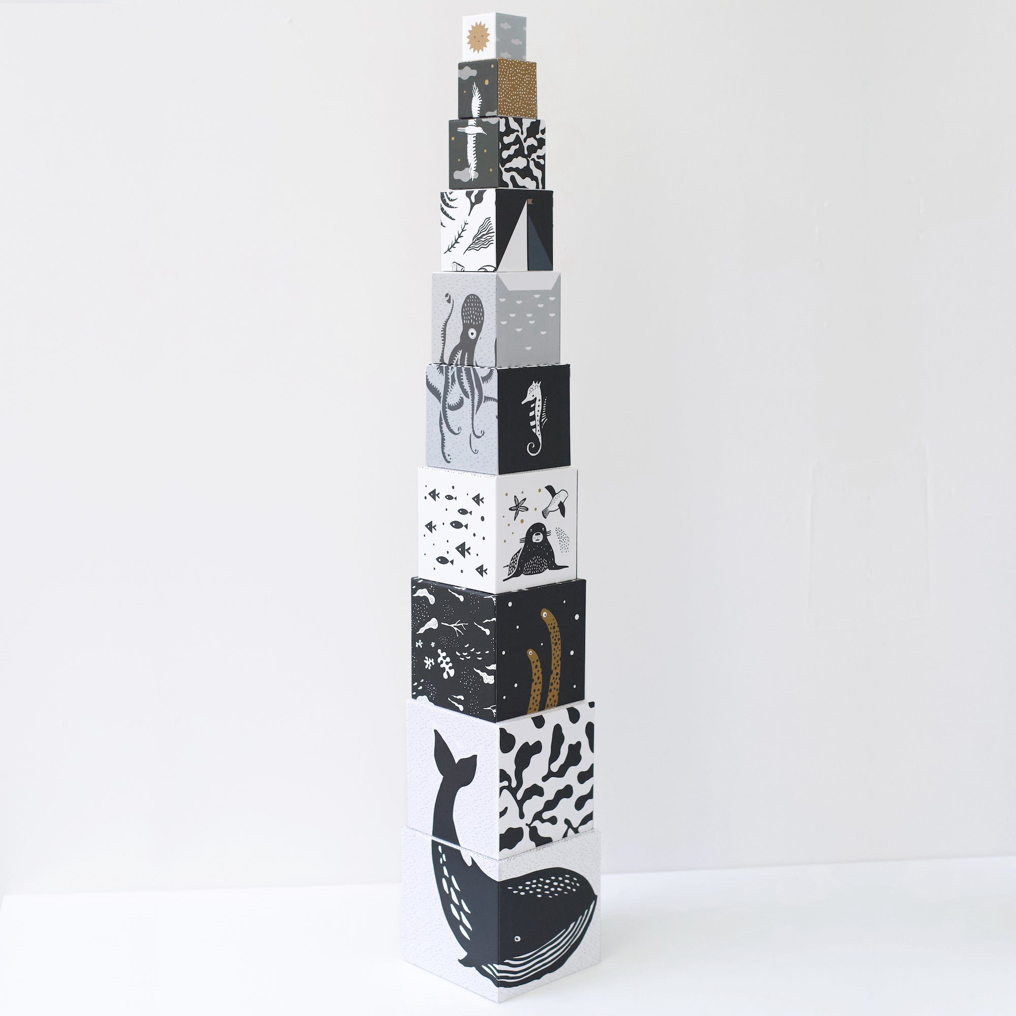 Blocs de nidification océaniques : fabriqués à partir de panneaux robustes certifiés FSC. Tenir à l'écart de l'eau. Peut être nettoyé avec un chiffon légèrement humide.