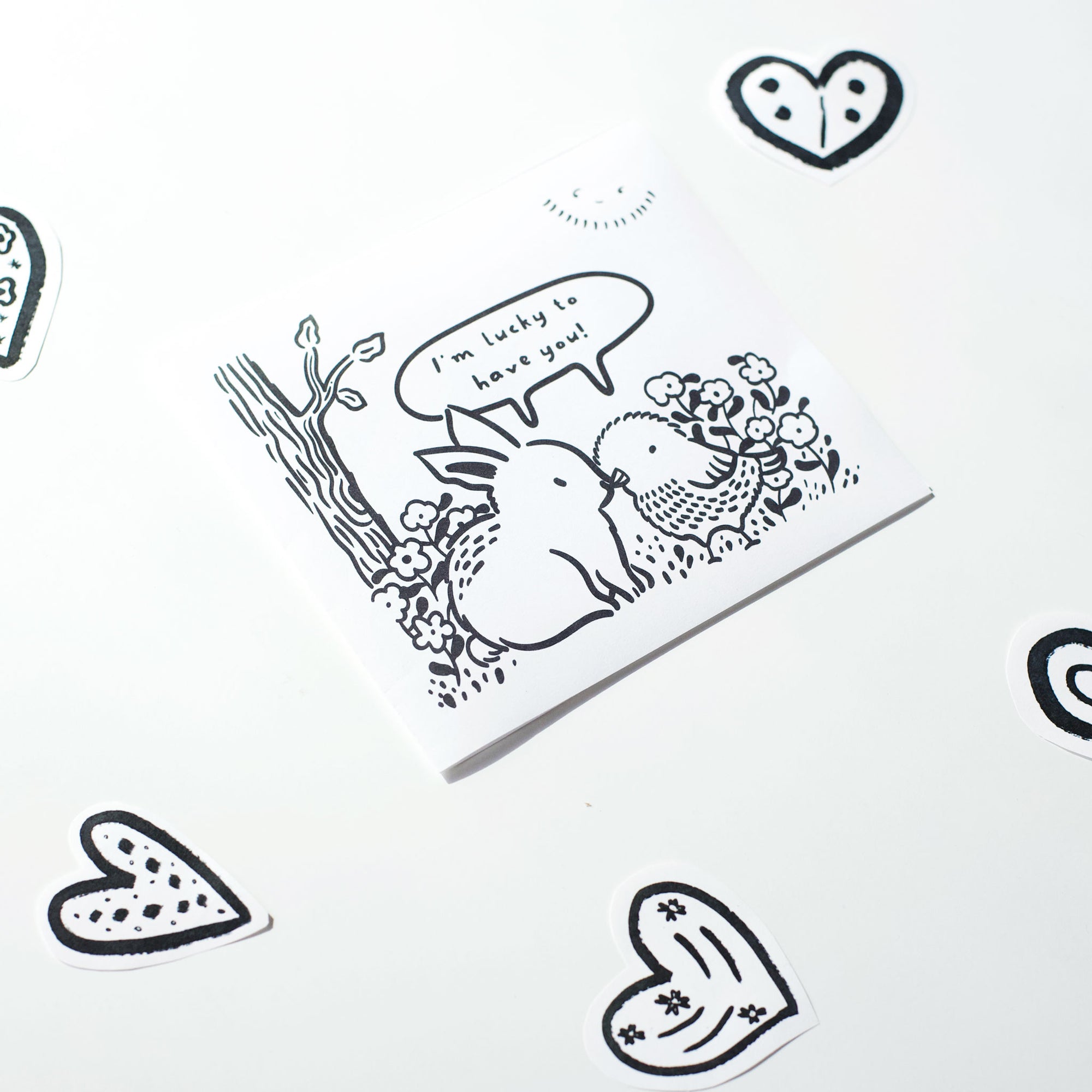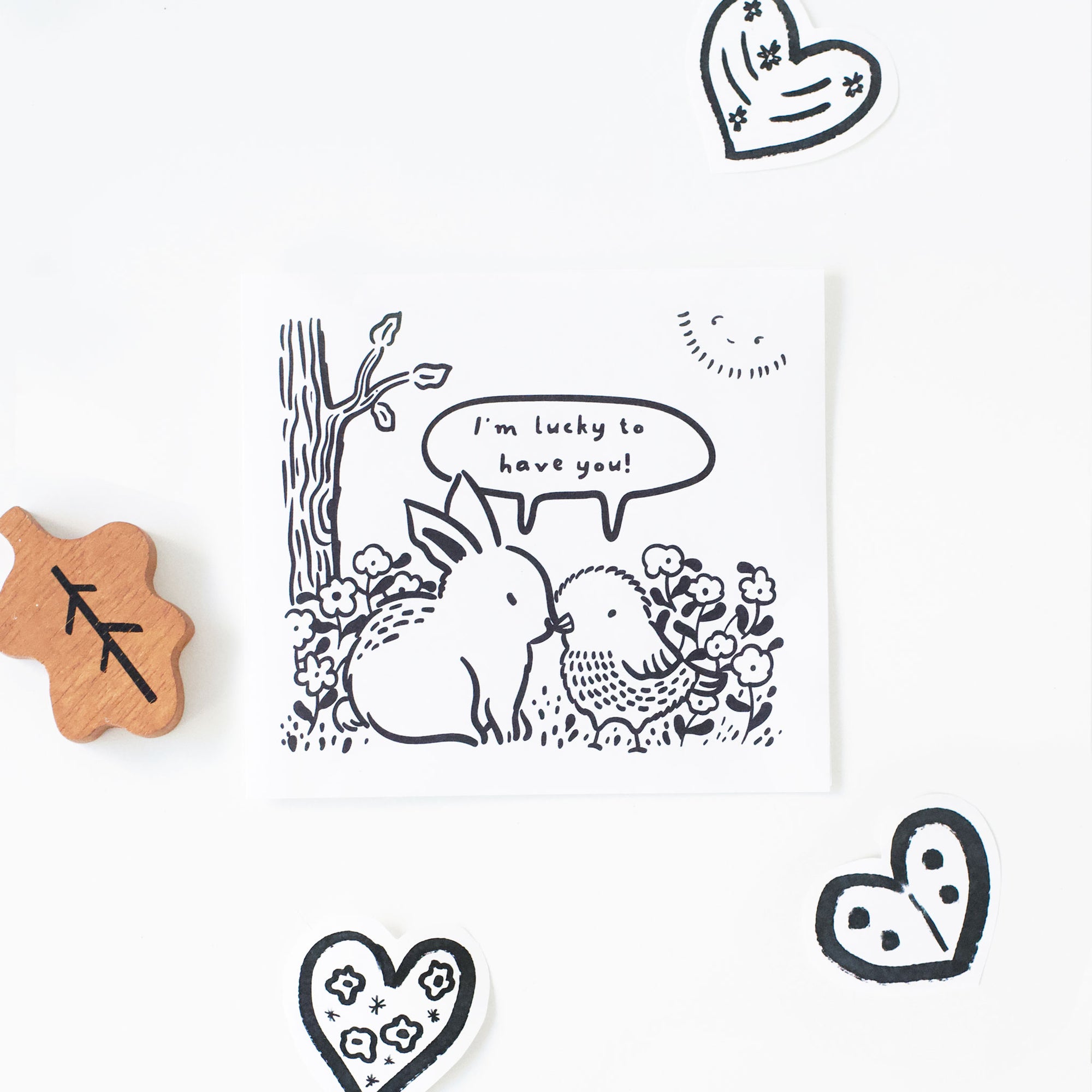 Dites à votre Valentin : "J'ai de la chance de t'avoir !" avec notre création de cartes imprimables gratuites. Imprimez, pliez, coupez et coloriez simplement si vous le souhaitez. L’intérieur de la carte est vierge pour votre message personnel.